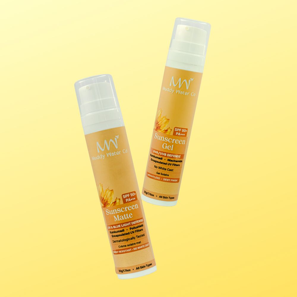 Enter MuddyWater SPF 50+ PA+++ Sunscreens - a perfect blend of new age, advanced UV filters and age-old skin-loving ingredients that keep your skin safe and radiant. All this with an absolute zero white cast. Yup, none at all! - www.muddywater.in
